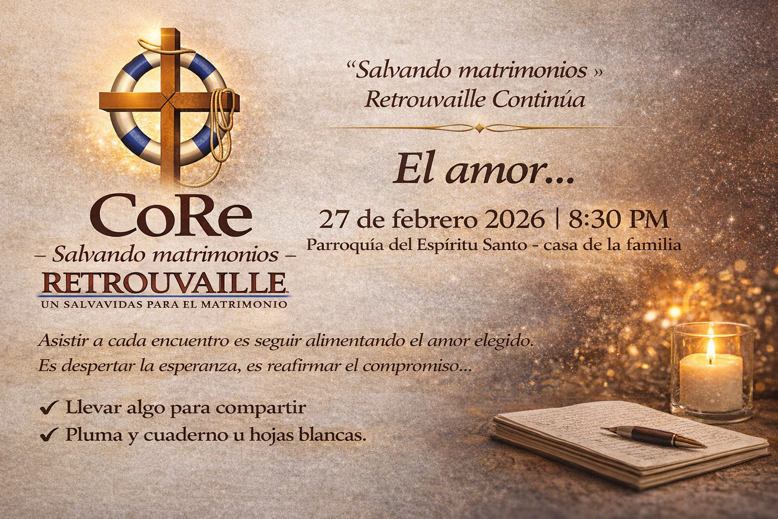 El amor se mantiene vivo cuando se cultiva. Y se fortalece aún más cuando se comparte. Este 27 de febrero será una oportunidad concreta para renovar el compromiso personal, matrimonial y comunitario. La información detallada ya ha sido compartida a través de los canales privados de la membresía activa.